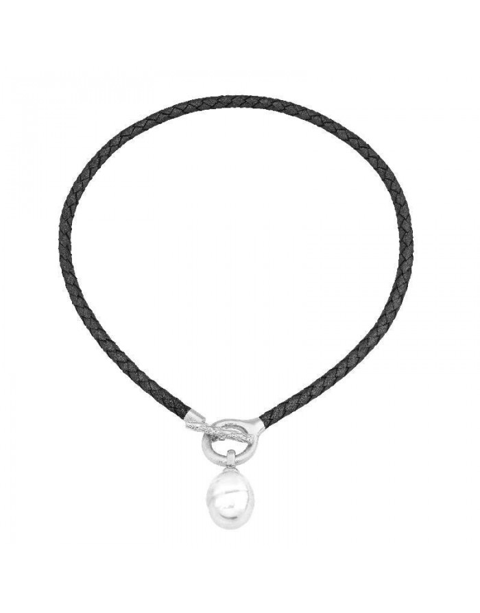 Gargantilla mediterr neo de cuero con perla de Majorica