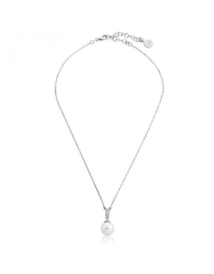 Colgante con perlas de Plata de Ley de la marca . Este colgante tiene cierre de de mosquetón y 37 cm con extensión a 42 cm de largo. Además, esta pieza de joyería tiene una perla redonda de color blanco y un diámetro de 10 mm. Es un colgante especialmente diseñado para mujer.