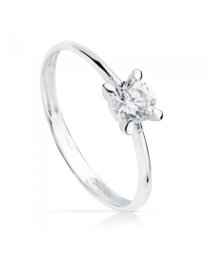 Solitario de Oro Blanco 18K de la marca Joyas Armaan . La piedra tiene una talla brillante.