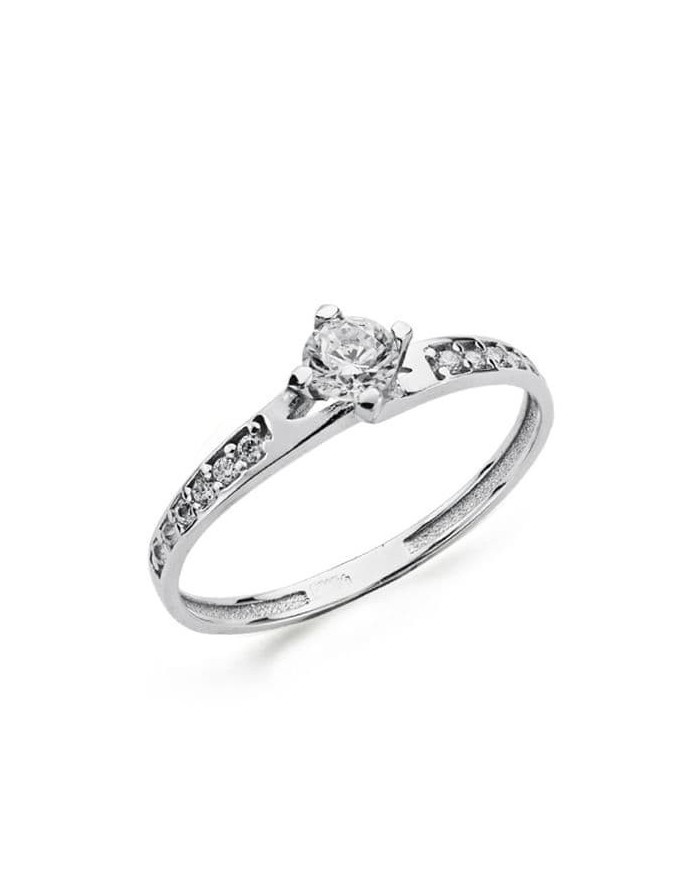 Las piedras laterales del anillo son circonitas de color transparentes . La piedra central del anillo es circonita de color transparente con un tamaño de 4mm.