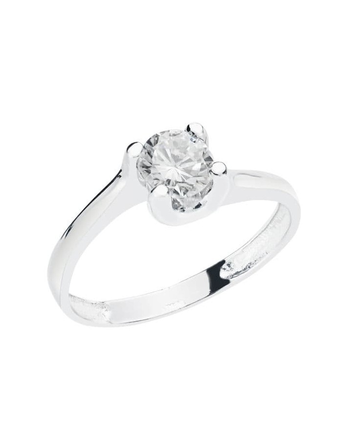 Anillo Solitario de Oro Blanco 18KT Circonita 4 Garras