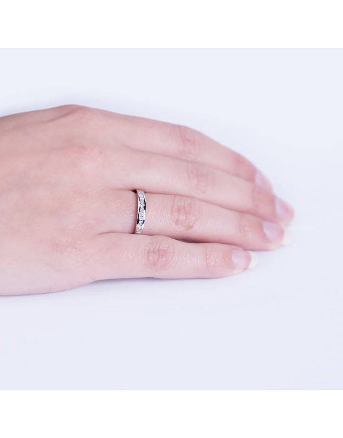 Media Alianza de Oro Blanco 18KT y acabado Brillo-Pulido de la marca Joyas Armaan. La piedra tiene una talla brillante.