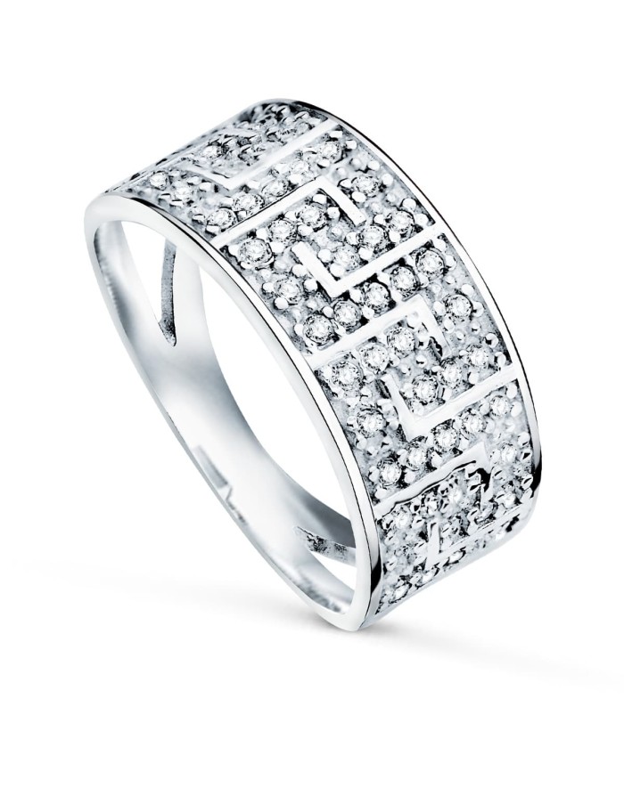 Sortija de Oro Blanco 9KT de la marca Joyas Armaan de 9 mm de ancho.