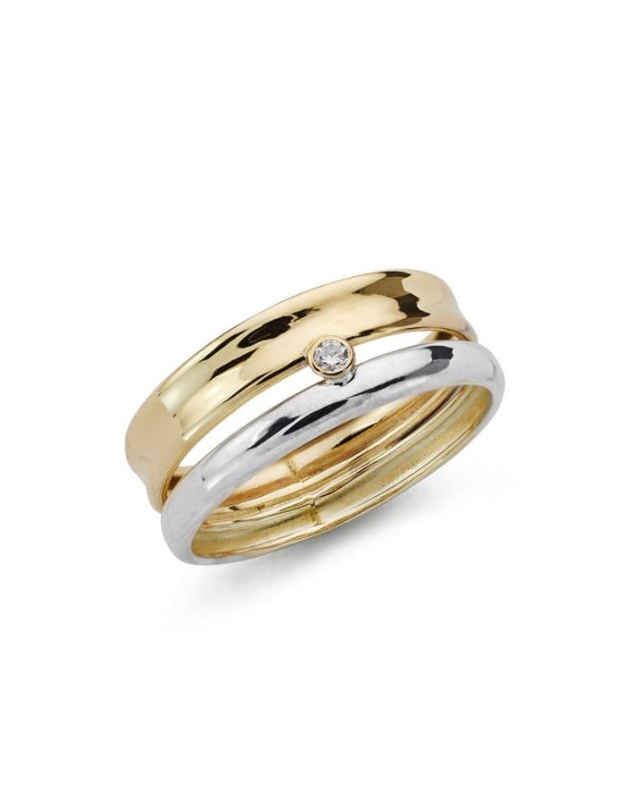 Sortija de Oro Amarillo 18KT y acabado bicolor de la marca Joyas Armaan.