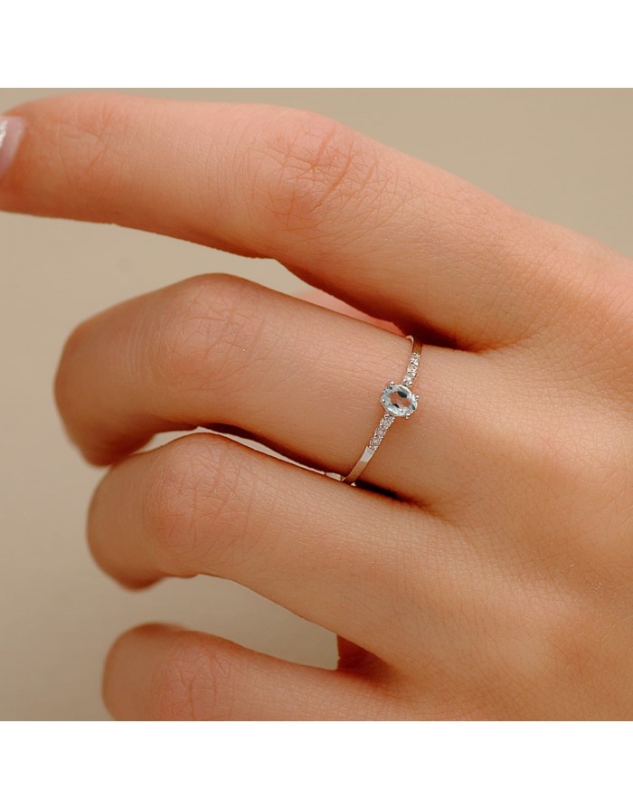 Sortija de Oro Blanco 18K de la marca Joyas Armaan de 1,30mm de ancho . La piedra tiene una talla oval.