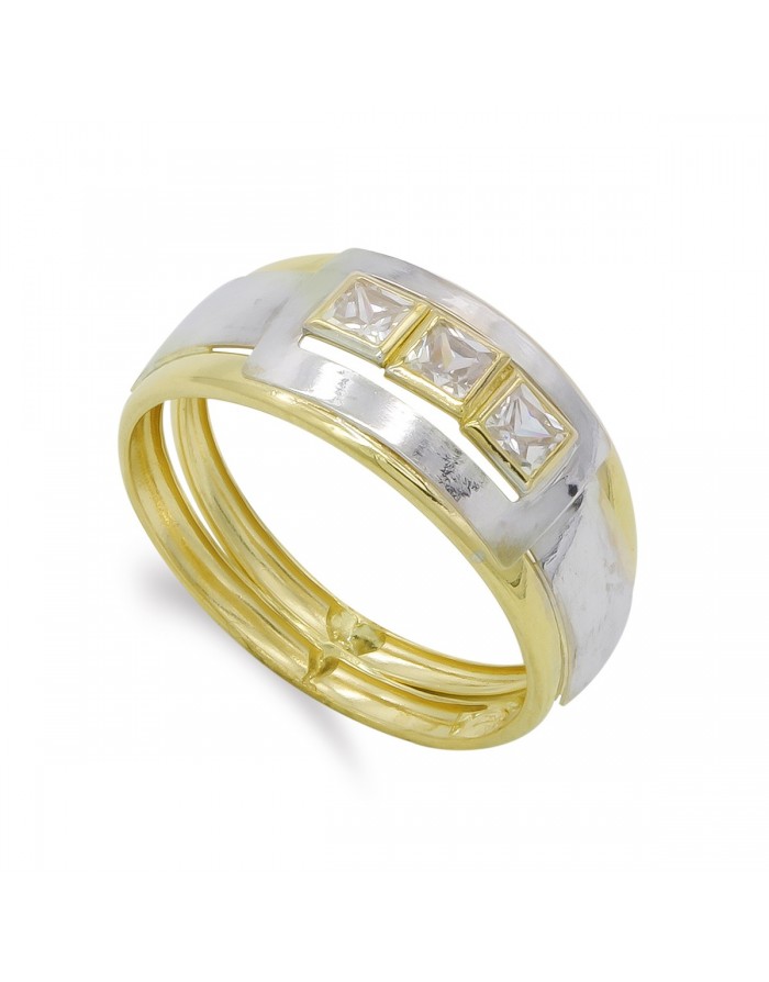 Anillo Mujer Oro 18KT Bicolor Bandas y Gemas