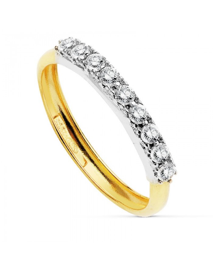 Media Alianza de Oro Amarillo 18KT y acabado bicolor de la marca Joyas Armaan. La piedra tiene una talla brillante.