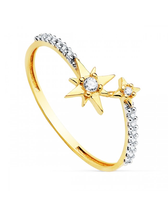 Sortija de Oro Amarillo 18KT de la marca Joyas Armaan de 1,1mm de ancho y diseño de Rosa de los Vientos.