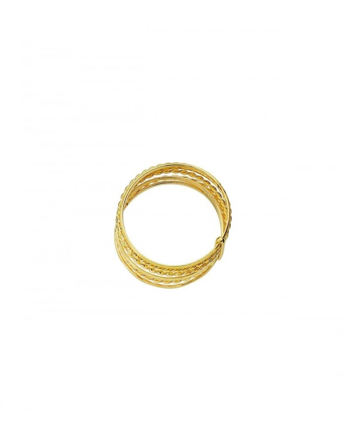 Anillo de Oro Amarillo 18KT de la marca JoyasArmaan. Esta sortija está formado por hilos lisos y trenzados intercalados de 1mm. de ancho cada uno. El acabado del anillo es pulido y en su parte más ancha mide 7mm.