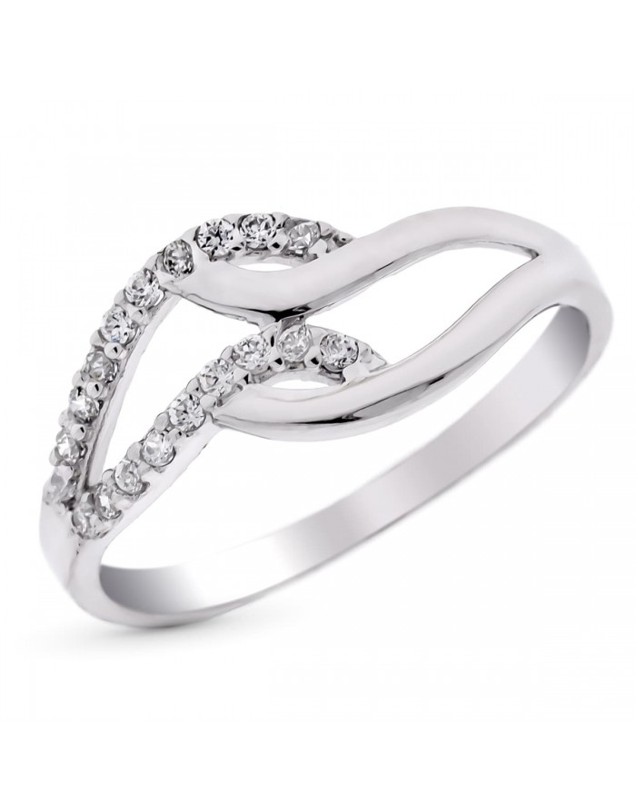 Sortija de Oro Blanco 9KT y acabado pulido de la marca Joyas Armaan . La piedra tiene una talla brillante.