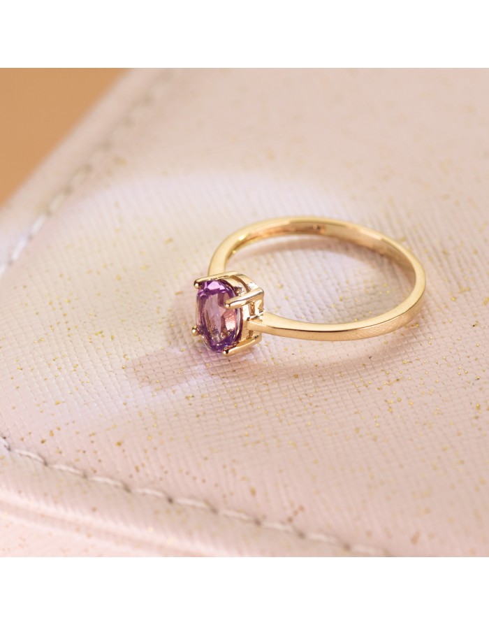 Sortija de Oro Amarillo 18KT de la marca Joyas Armaan de 2mm de ancho . La piedra tiene una talla oval.
