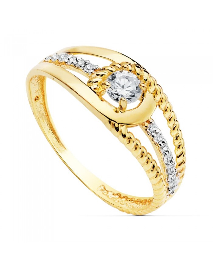 Sortija para mujer de Oro Amarillo 18KT y acabado bicolor de la marca Joyas Armaan .