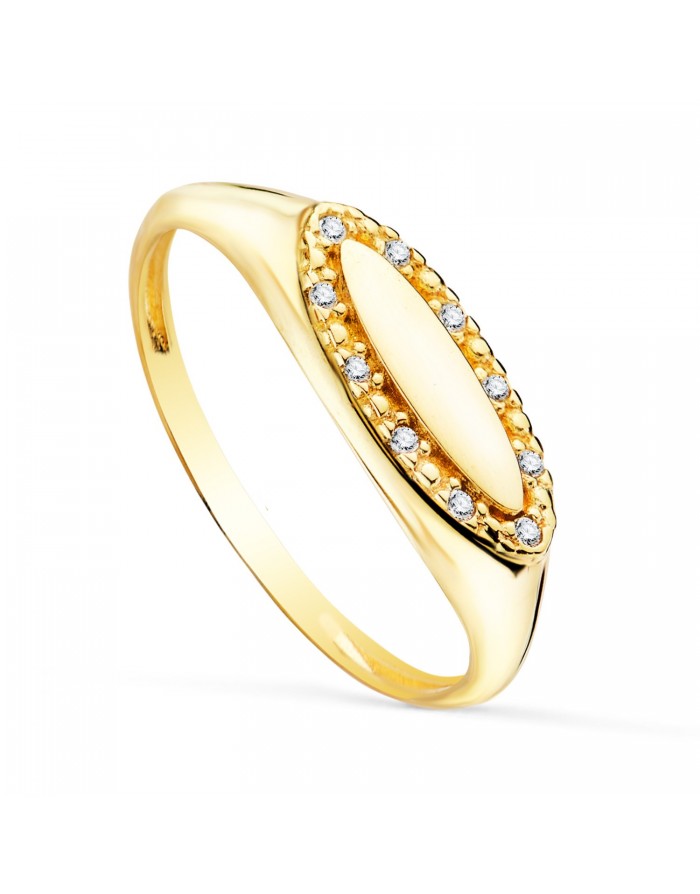 Sello para mujer de Oro Amarillo 18KT de la marca Joyas Armaan. La cabeza de este anillo la decoran Circonitas en talla brillante y engarzadas en pavé, formando una elipse con unas medidas de 14 x 6 mm.
