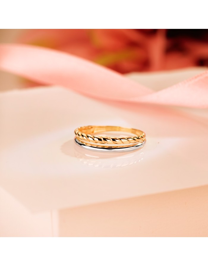 Sortija de Oro Amarillo 18KT y acabado bicolor de la marca Joyas Armaan de 4mm de ancho.