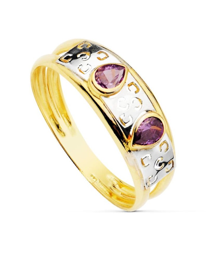 Sortija Amatista Talla Pera Oro 18KT Bicolor
