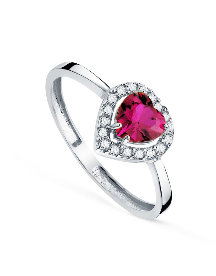 Anillo de Oro Blanco 18KT Talla Corazón Rubí