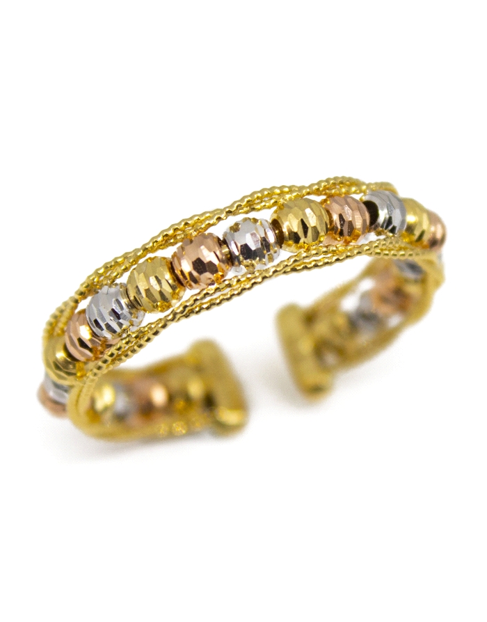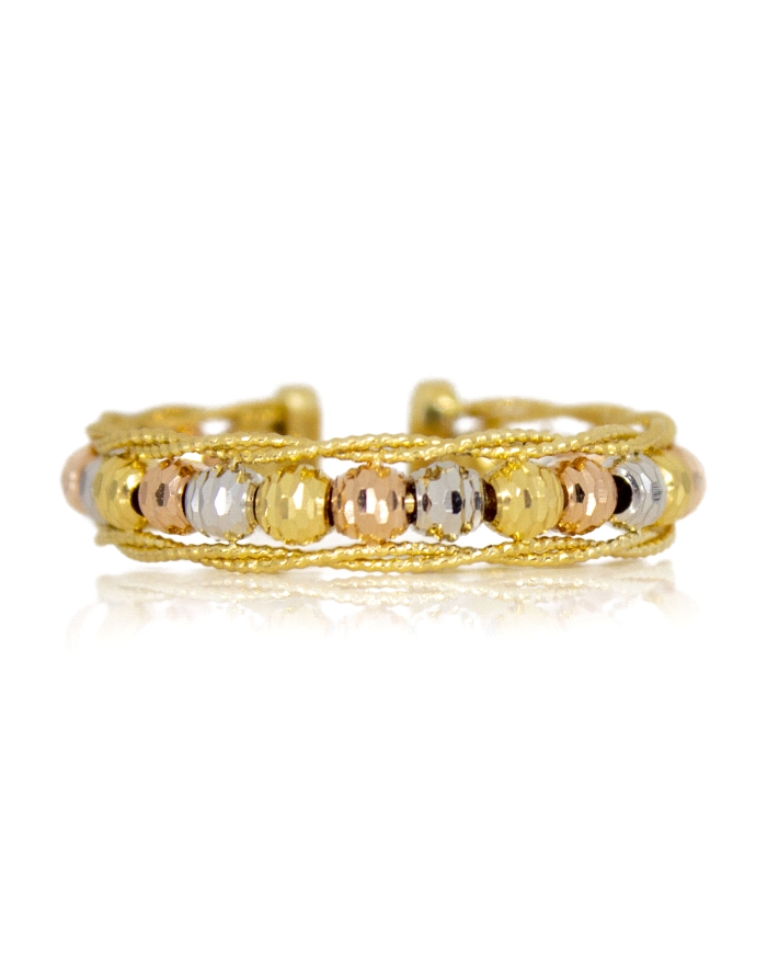 Anillo Abierto Tricolor con Bolitas de Oro 18KT