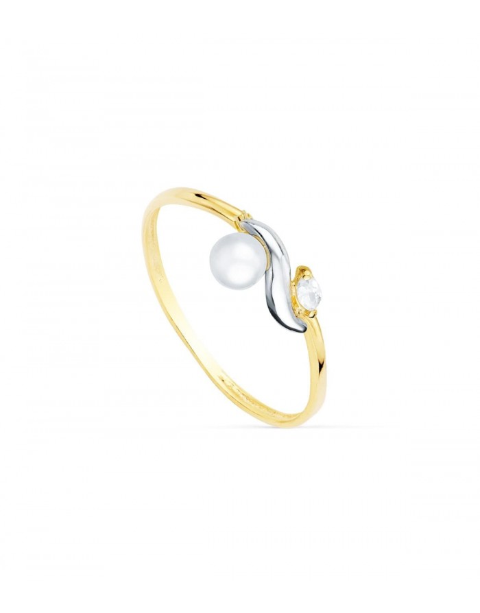 Sortija "Verne" Oro Amarillo y Blanco de 18KT Perla y Circonita