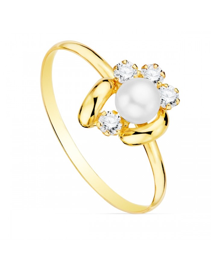 Sortija Niña Clivia Perla y circonitas brillantes Oro de 18KT