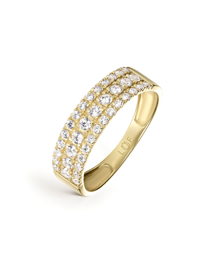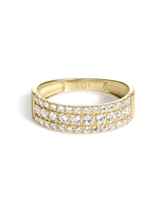Anillo con triple fila de Circonitas en Oro amarillo de 18K