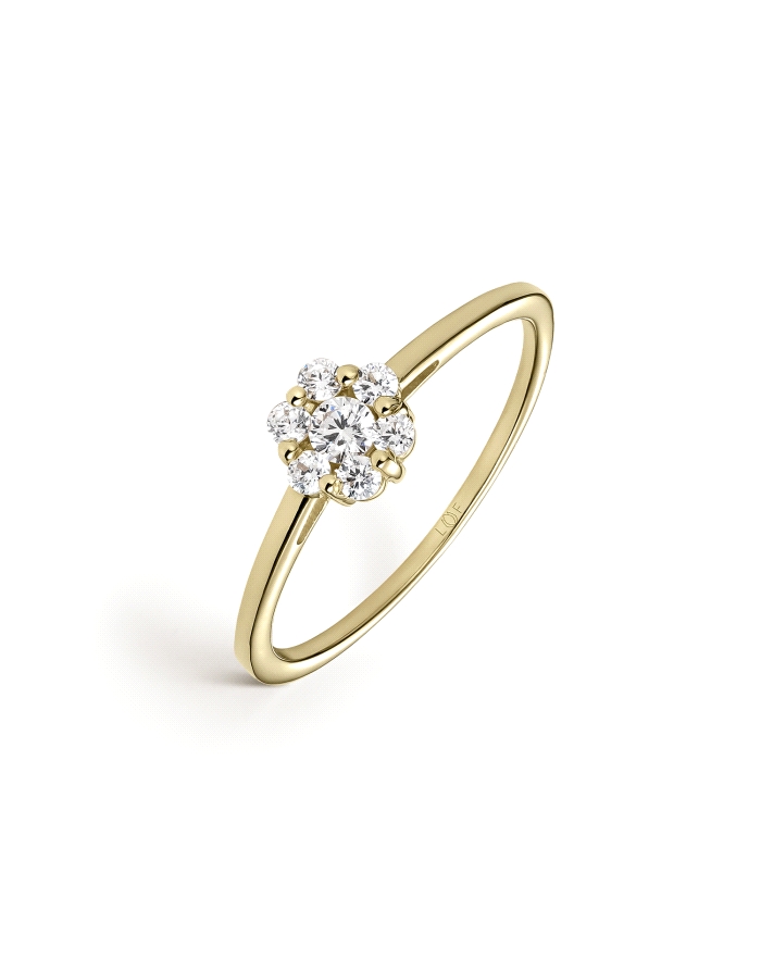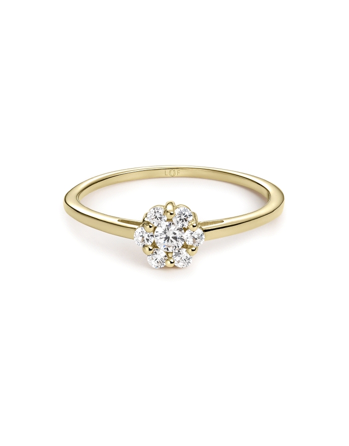 Anillo Roseta Solitario en Oro Amarillo de 18K con Circonitas