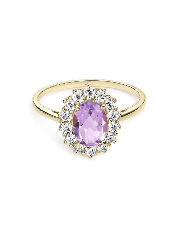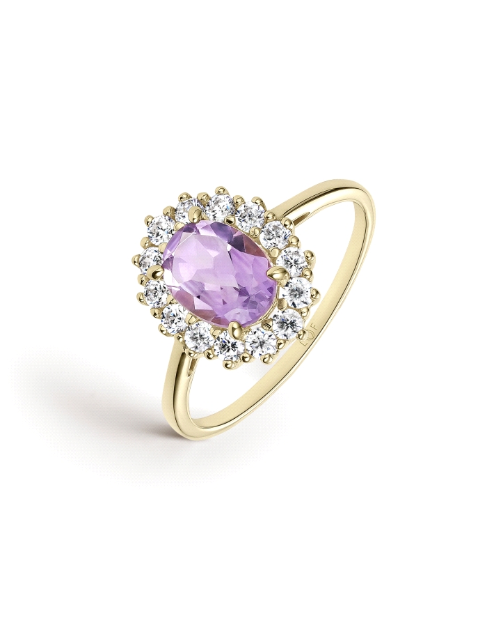 SORTIJA ORO AMARILLO CUAJO CIRCONITAS CON AMATISTA OVAL 8*6