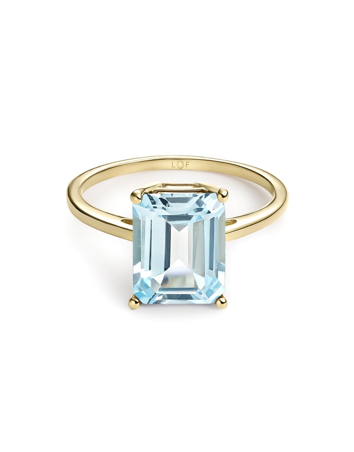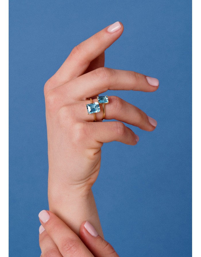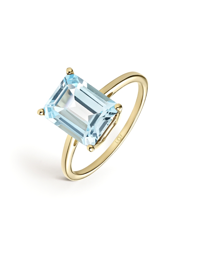 Anillo de Oro Amarillo 18KT de la marca Litta Fiore. La piedra tiene una talla Esmeralda.