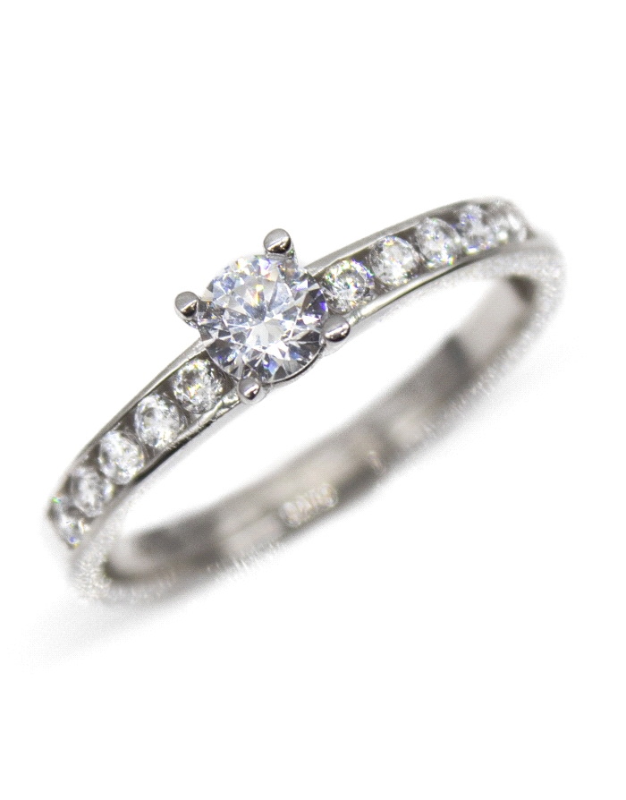 Anillo de Compromiso de Oro Blanco 18K con Circonitas