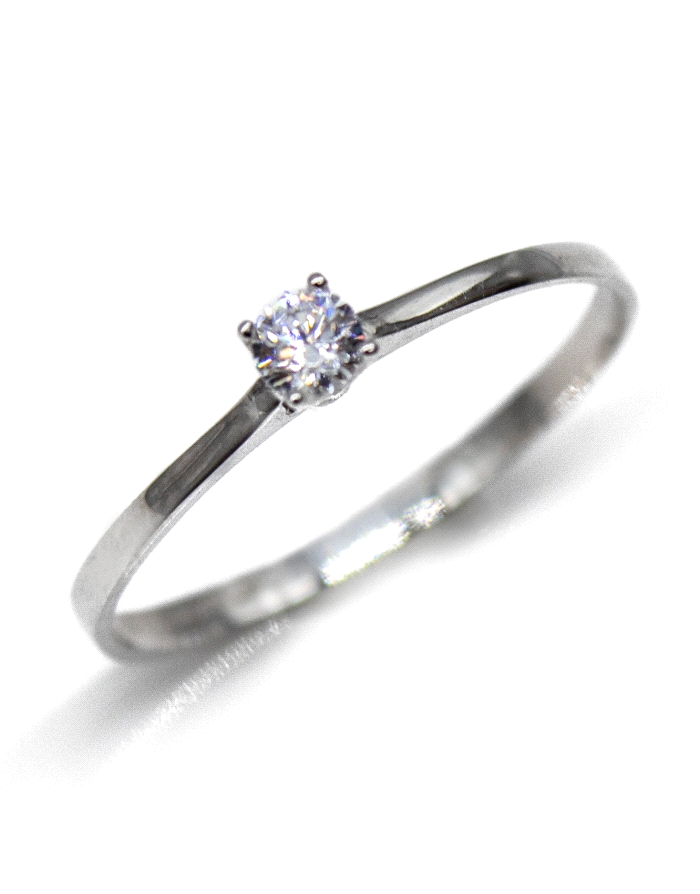 Anillo Solitario Fino de Oro Blanco 18K con Circonita