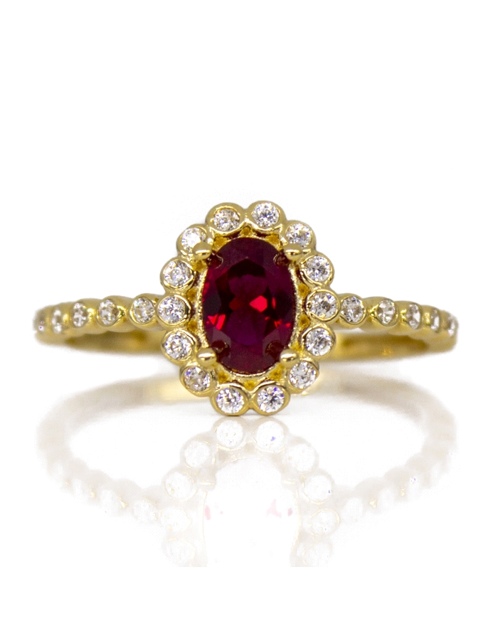 Anillo de Oro 18K con Circonitas y Rubí Sintetico