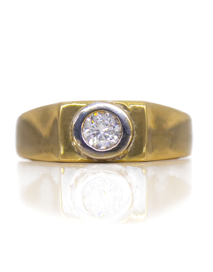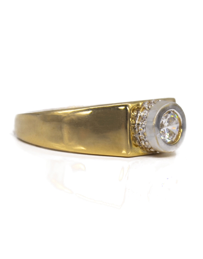 Solitario Caballero Bicolor de Oro 18K con Circonitas