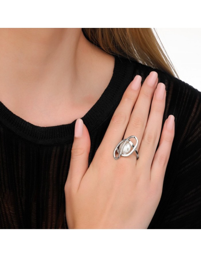 Anillo de Plata de Ley y acabado Rodio de la marca Majorica.