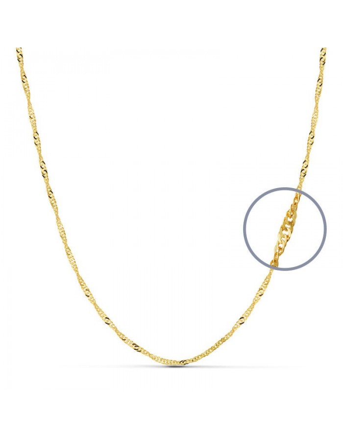 Cadena tipo Singapur hecha en Oro Amarillo 18K de la marca Joyas Armaan, el largo de la pieza es de 40 cm.