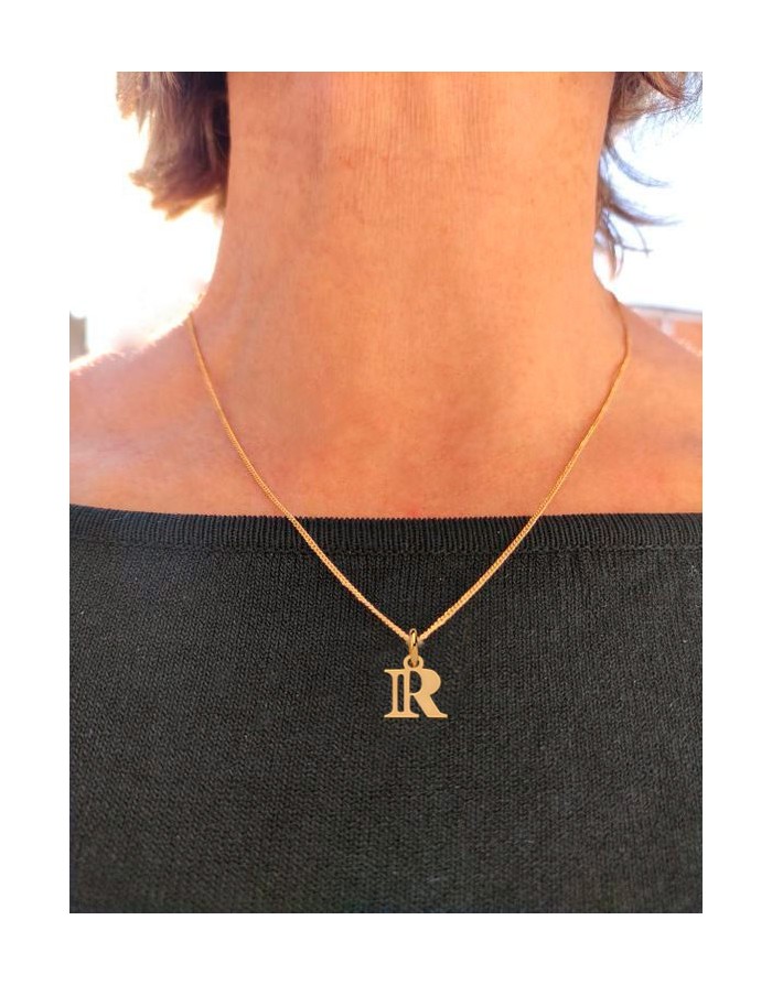 Colgante de Oro Amarillo 18KT con la Letra R, de la marca Joyas Armaan.