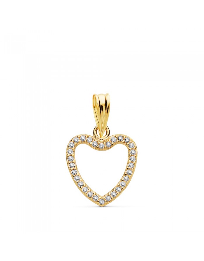 Colgante de Oro Amarillo 18K en forma de Corazón de la marca Joyas Armaan. La piedras que la adornan son Circonitas de color Transparentes. Es un colgante especialmente diseñado para mujer.