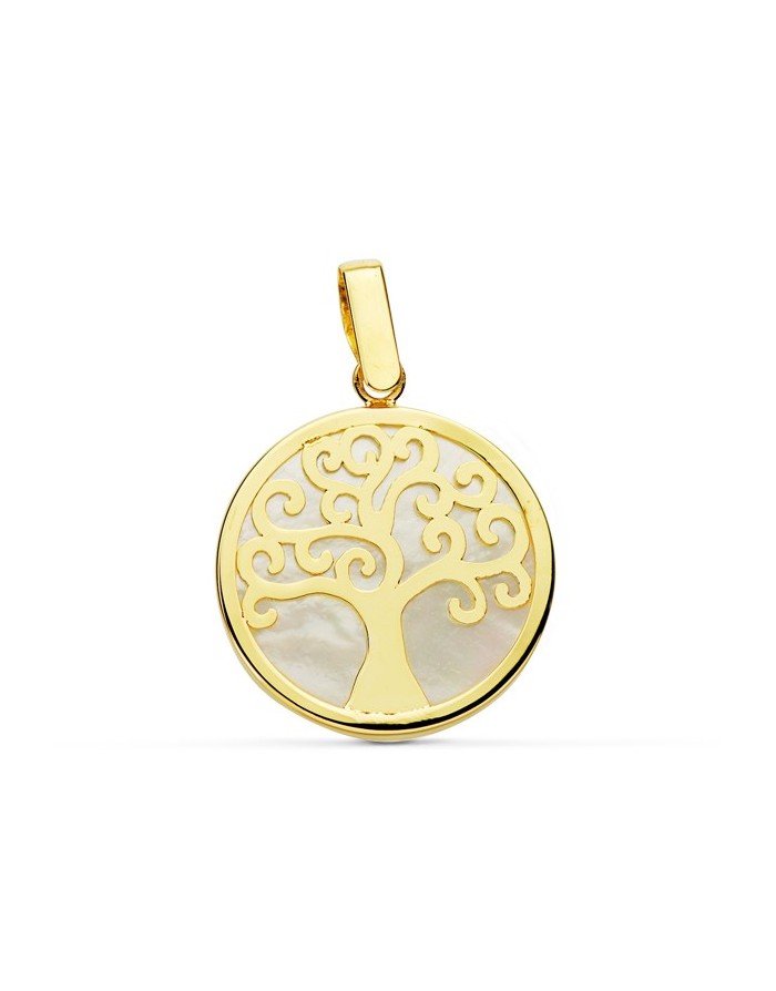 Colgante Árbol De La Vida en Oro de 18kt fondo de Nácar -18mm