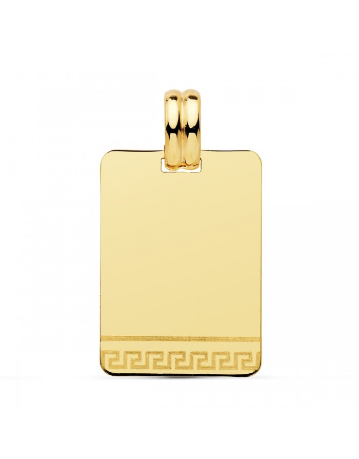 Colgante Chapa Personalizable en Oro de 18Kt Greca en Láser -24 x 17mm
