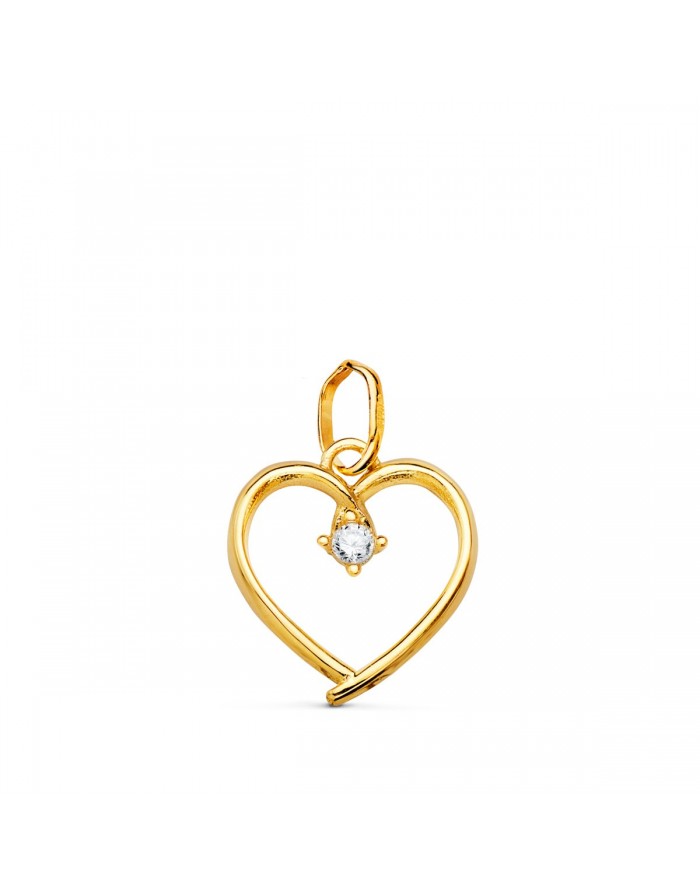 La piedra que adorna a esta elegante joya es una circonita de 2 milímetros engastada en cuatro garras y en talla brillante. Las dimensiones de este corazón de oro son 13 x 12 milímetros.