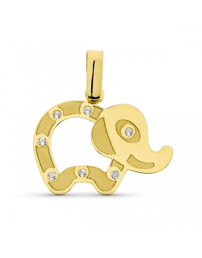 Colgante de Oro Amarillo 18KT en forma de Elefante de la marca Joyas Armaan. La piedras que la adornan son Circonitas de color Transparentes. Es un colgante especialmente diseñado para mujer.