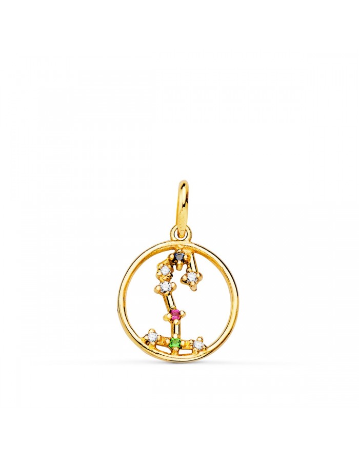 Colgante de Oro Amarillo 18K en forma de Horóscopo Constelación de la marca Joyas Armaan. La piedras que la adornan son Circonitas de color multicolor. Es un colgante especialmente diseñado para mujer.