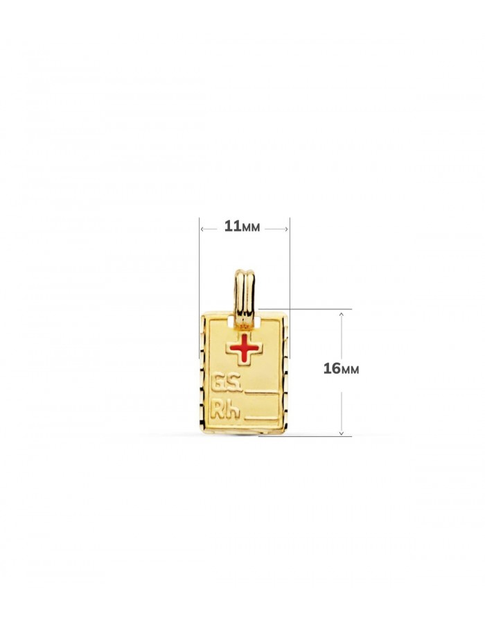 Es una placa con un acabado pulido y en la que podemos grabar el grupo sanguíneo junto con el RH. Destaca la cruz esmaltada en color rojo y un fino tallado en todo el perímetro de la placa.