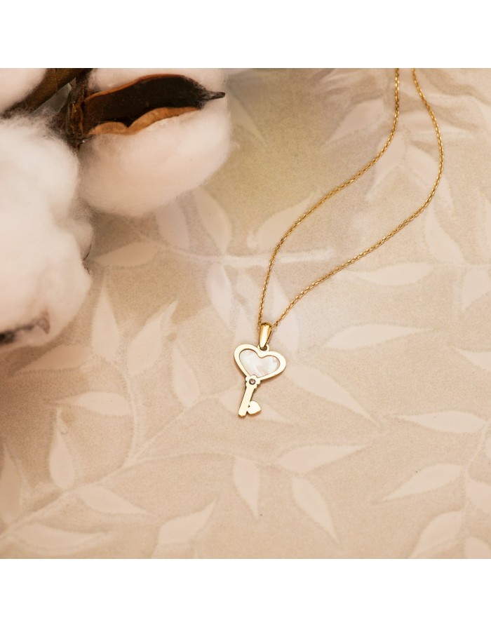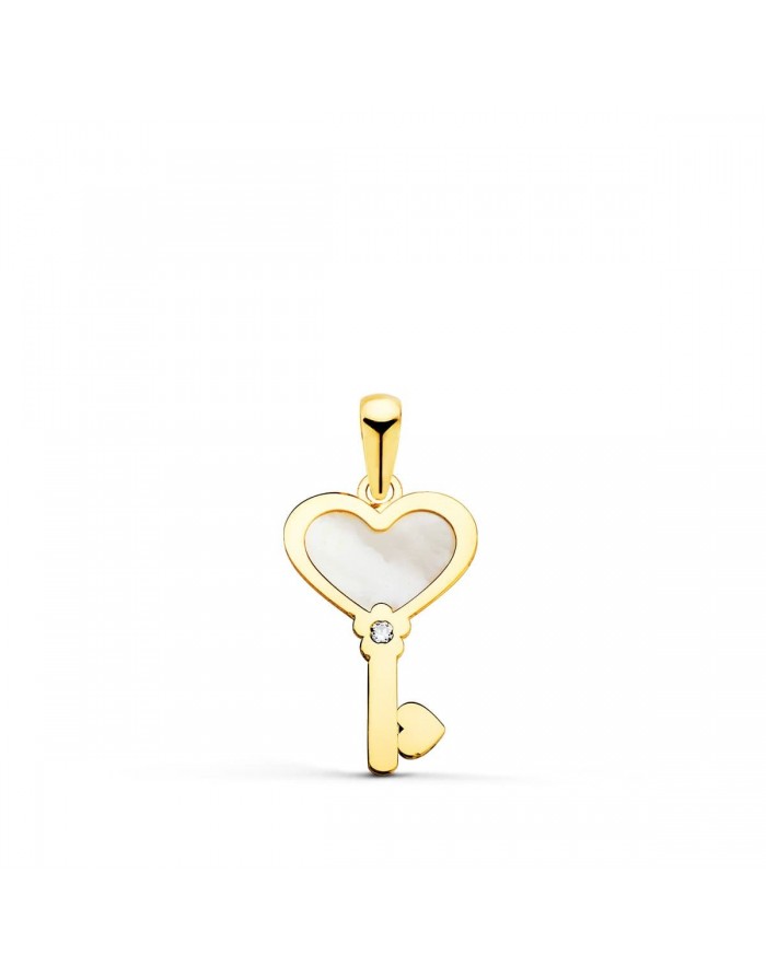 Colgante Llave amuleto en Oro de 18KT Nácar y Circonita -18 x 11mm