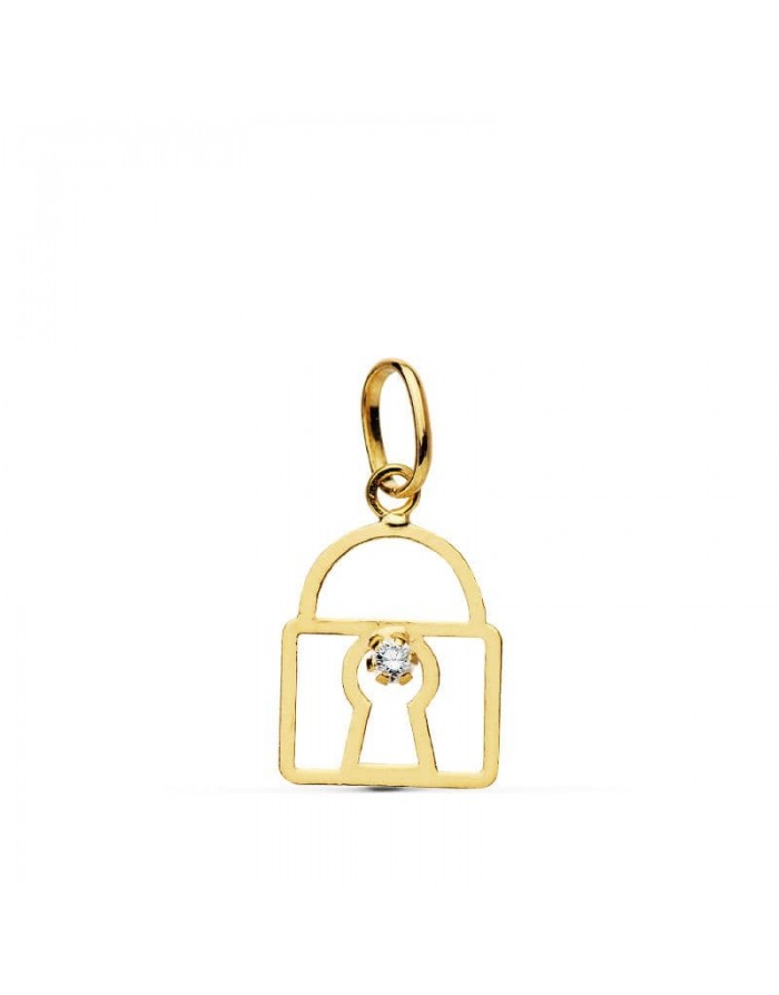 Colgante Amuleto Candado Circonita en Oro de 18KT -11 x 10 MM
