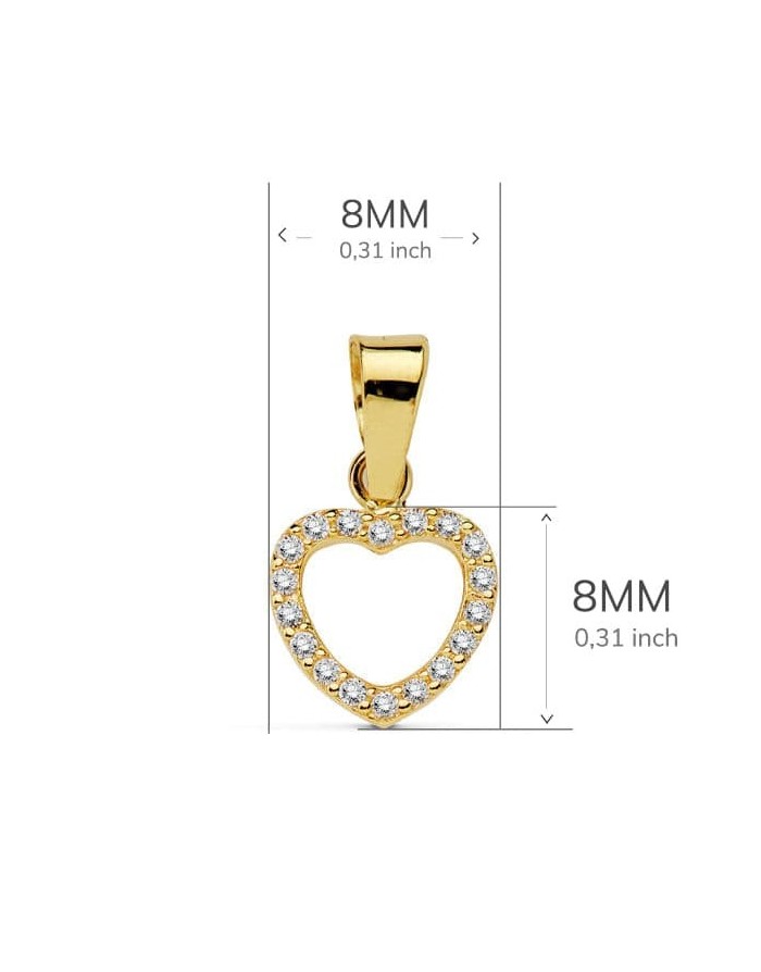 Colgante Corazón Silueta de Circonitas en Oro de 18KT -8mm