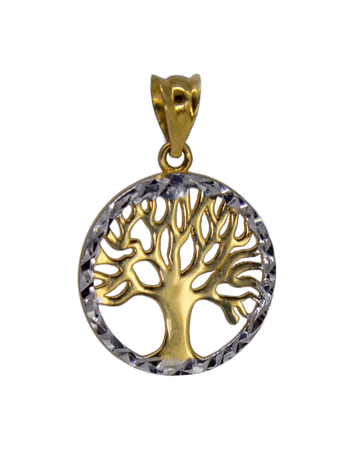 Colgante Bicolor Arbol de la Vida de Oro 18K