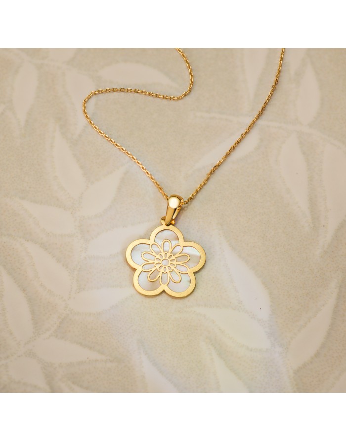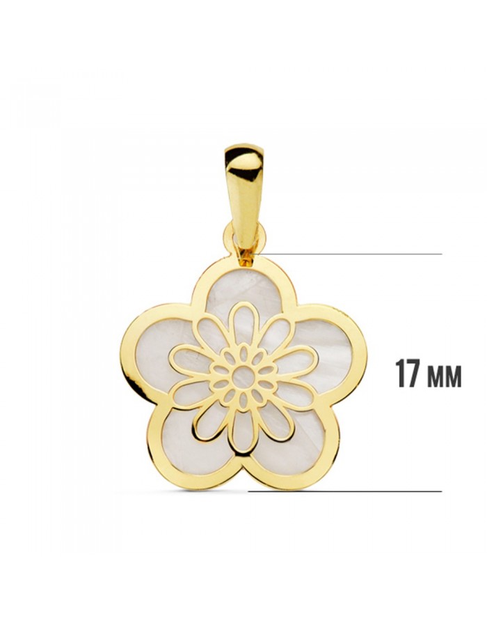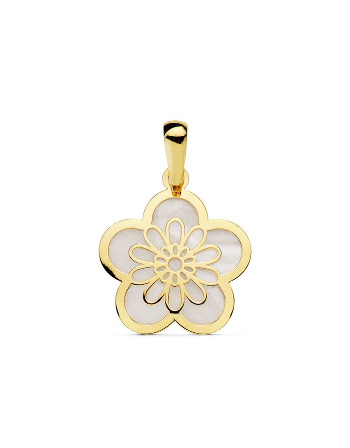 Colgante de Oro Amarillo 18K en forma de Flor de la marca Joyas Armaan. La piedras que la adornan son Nácar. Es un colgante especialmente diseñado para mujer.