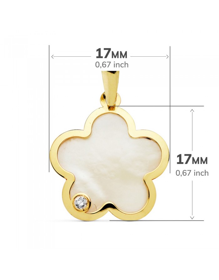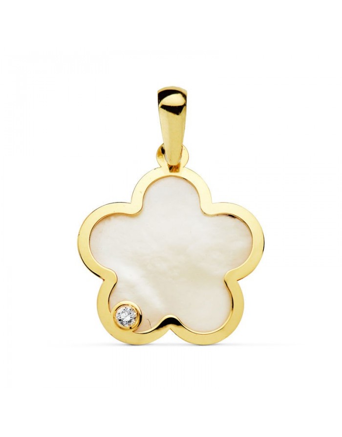 Colgante Flor con Nácar y Circonita en Oro de 18Kt