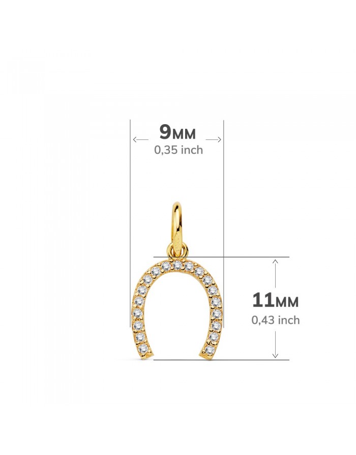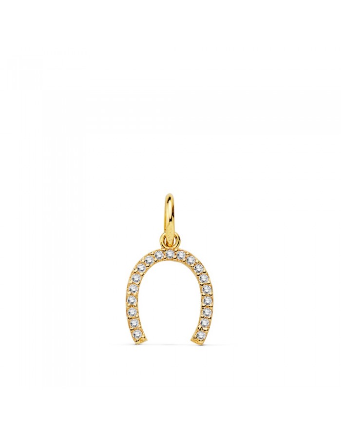 Colgante de Oro Amarillo 18K en forma de herradura de la marca Joyas Armaan. La piedras que la adornan son Circonitas de color Transparentes. Es un colgante especialmente diseñado para unisex.