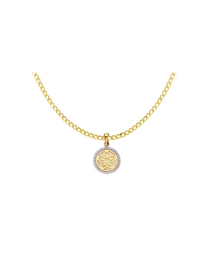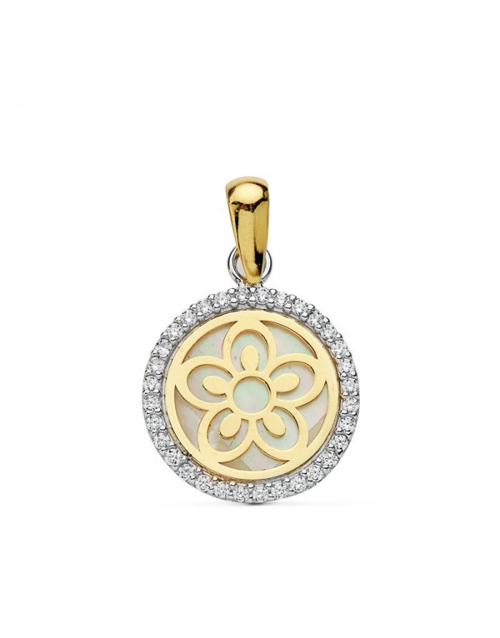 Colgante en Oro Amarillo y Oro Blanco de 18kt Flor con nácar Oro 18kt