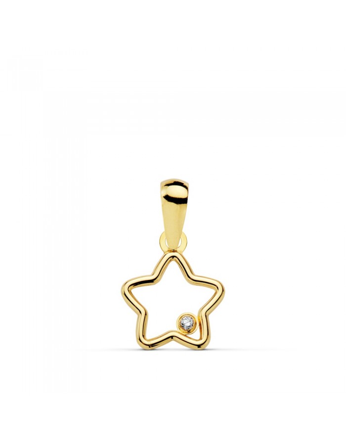 Colgante de Oro Amarillo 18K en forma de Estrella de la marca Joyas Armaan. La piedras que la adornan son circonita de color transparente. Es un colgante especialmente diseñado para niña/mujer.